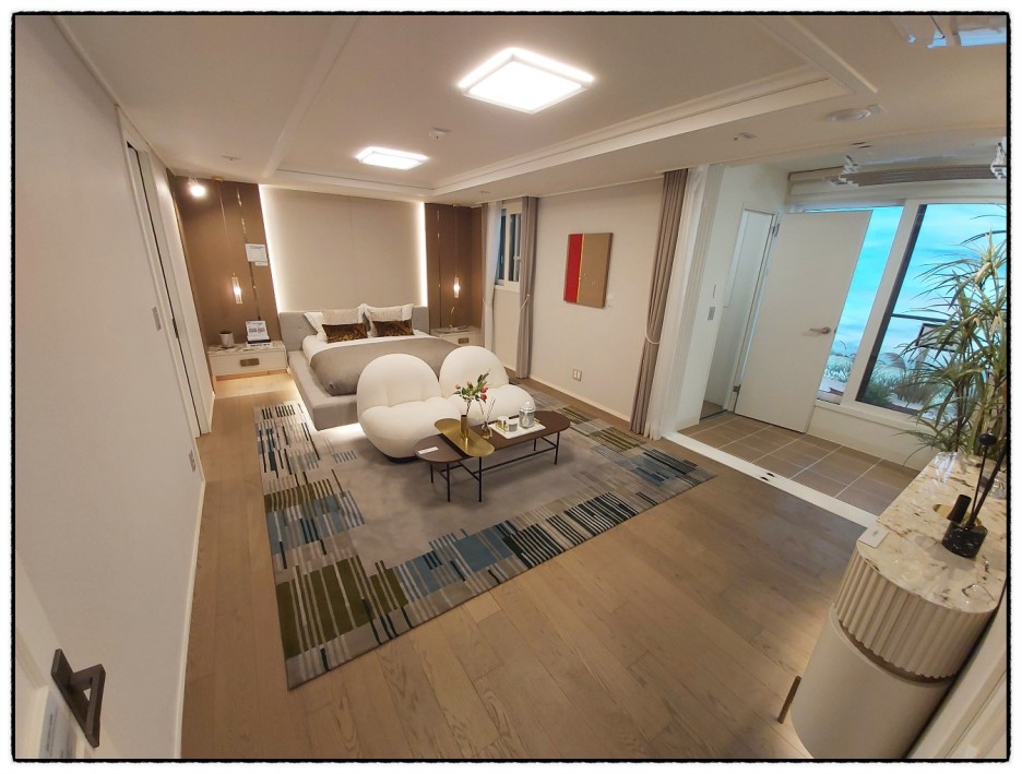 그리고 99m2 타입은 호텔의 스위트룸을 연성하게 하는 대형 마스터룸과 펜트하우스 식 빌트인 가구를 설치해 품격있는 공간을 선보일 예정이고, 각 세대에 공기 청정 기능이 있는 최신식 LG시스템 에어켠과 냉장·냉동·김치냉장고로 구성되어 있는 컬럼 빌트인 냉장고가 무상으로 제공하는 등 서른세가지의 풀옵션을 제공되는 인천에서 처음으로 들어서는 풀옵션 아파트입니다.