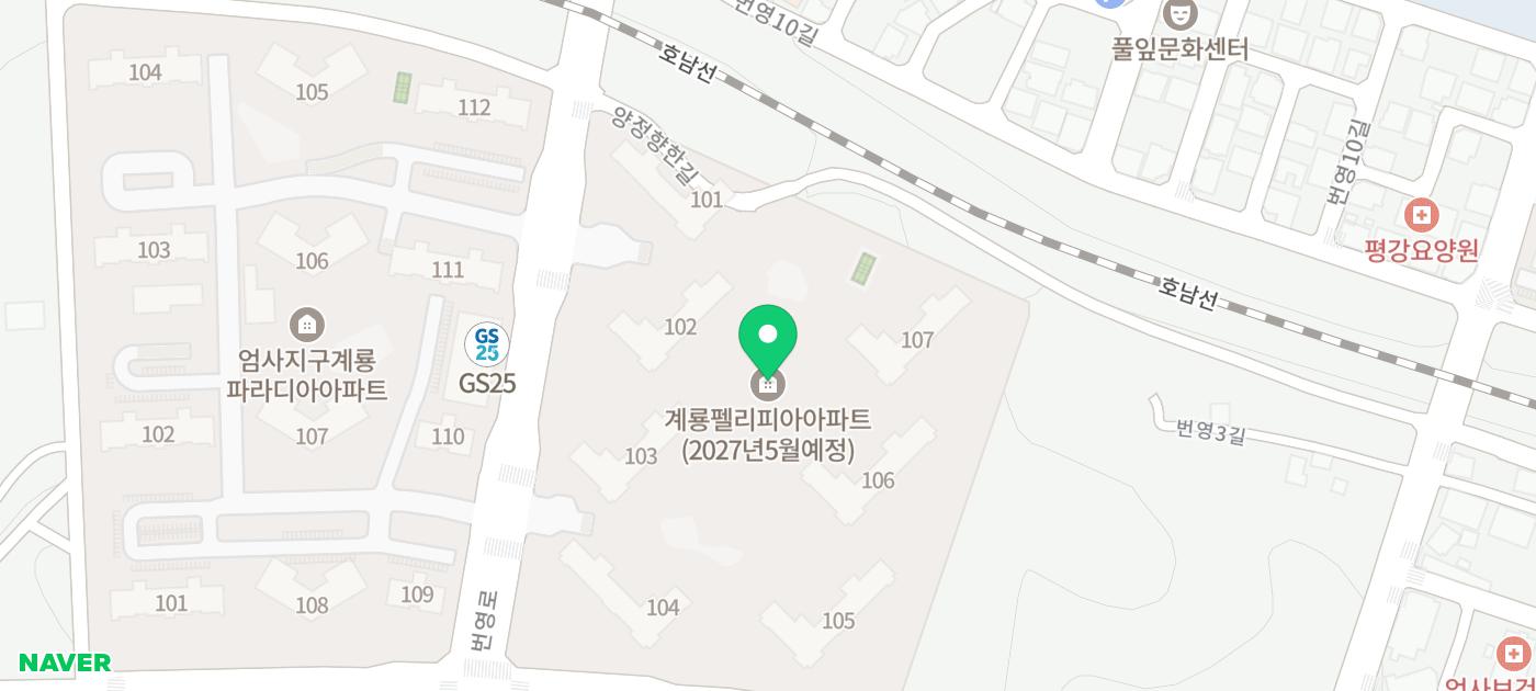 계룡 펠리피아 자연환경으로 단지 인근에 엄사공원과 향적산, 엄사근린공원, 두계천 산책로, 시도안체육공원, 무궁화동산, 용동저수지, 새터산근린공원, 금암근린공원, 뒷골공원, 두계근린공원 등 자연환경들도 인접해 있어 쾌적한 자연환경도 함께 누리실 수 있습니다.